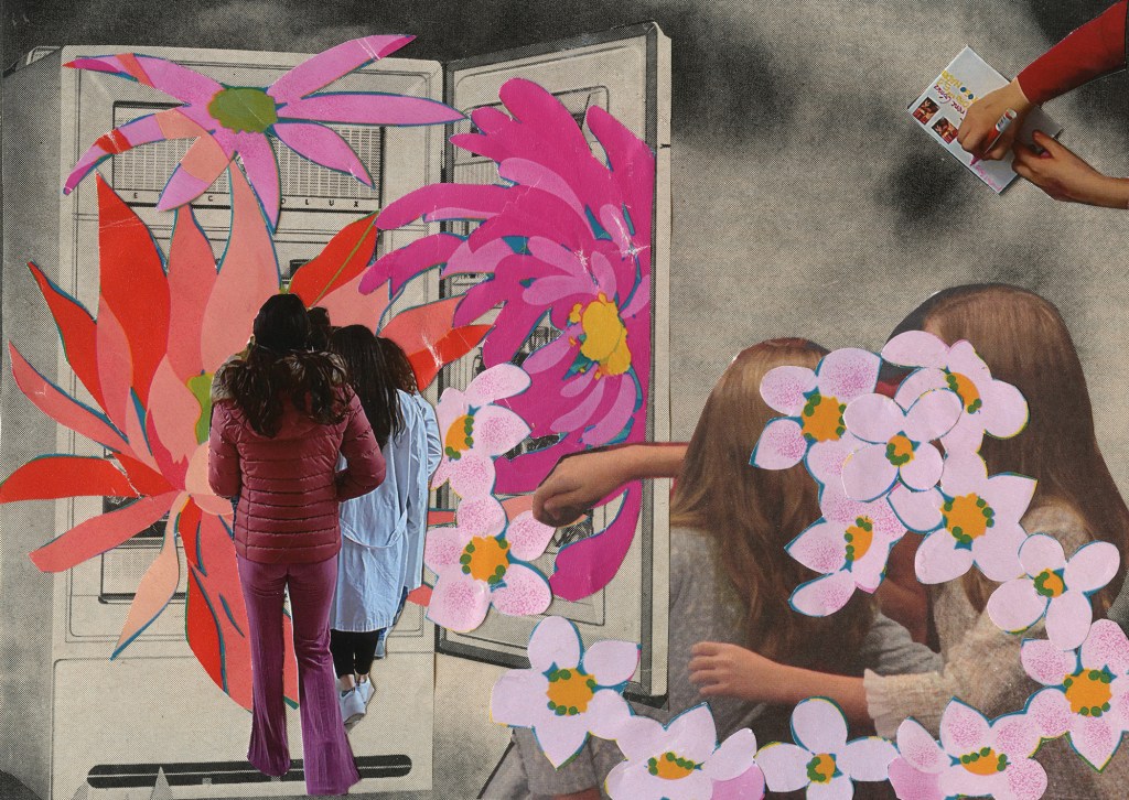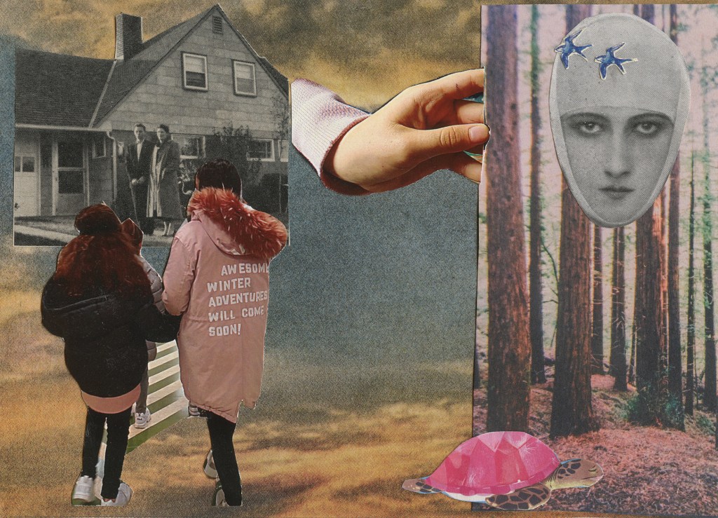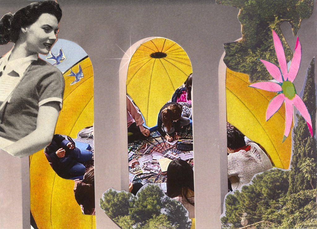 A partir de la sencilla estructura de una postal en blanco, podíamos hacer uso de técnicas como el collage, la escritura automática, el cadáver exquisito, para que la seda de nuestros hilos fuera capaz de transmitir las vibraciones emitidas desde donde estábamos, más allá de juicios estéticos estrechos sobre lo bonito y lo feo. La postal era también un modo de activar diálogos imprevistos entre el dentro y el afuera: un modo de tender hilos entre los destinatarios, elegidos cuidadosamente por las propias chicas o al azar; conversaciones de ida y vuelta sobre las que luego sostenerse y caminar, aunque fuera un poco.